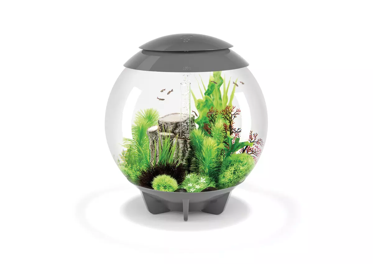 Designobjektet biOrb HALO fengsler med sin skjulte vannlinje. Denne versjonen er tilgjengelig i forskjellige størrelser og farger. Avhengig av design kan belysningen styres i tidssykluser. Du kan velge mellom forskjellige farger for belysningen. I tillegg til akrylakvariet inneholder det komplette settet en LED-lysenhet, akvariepumpen, en transformator, en luftstein, keramiske medier og en filterpatron. Dette designobjektet kan også brukes som et akvarium.