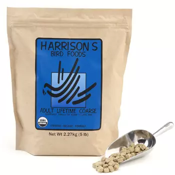 DAGLIG VEDLIKEHOLD: Denne helårs vedlikeholdsformelen oppfyller næringskravene til sunne, ikke-avl, ikke-smeltende fugler.