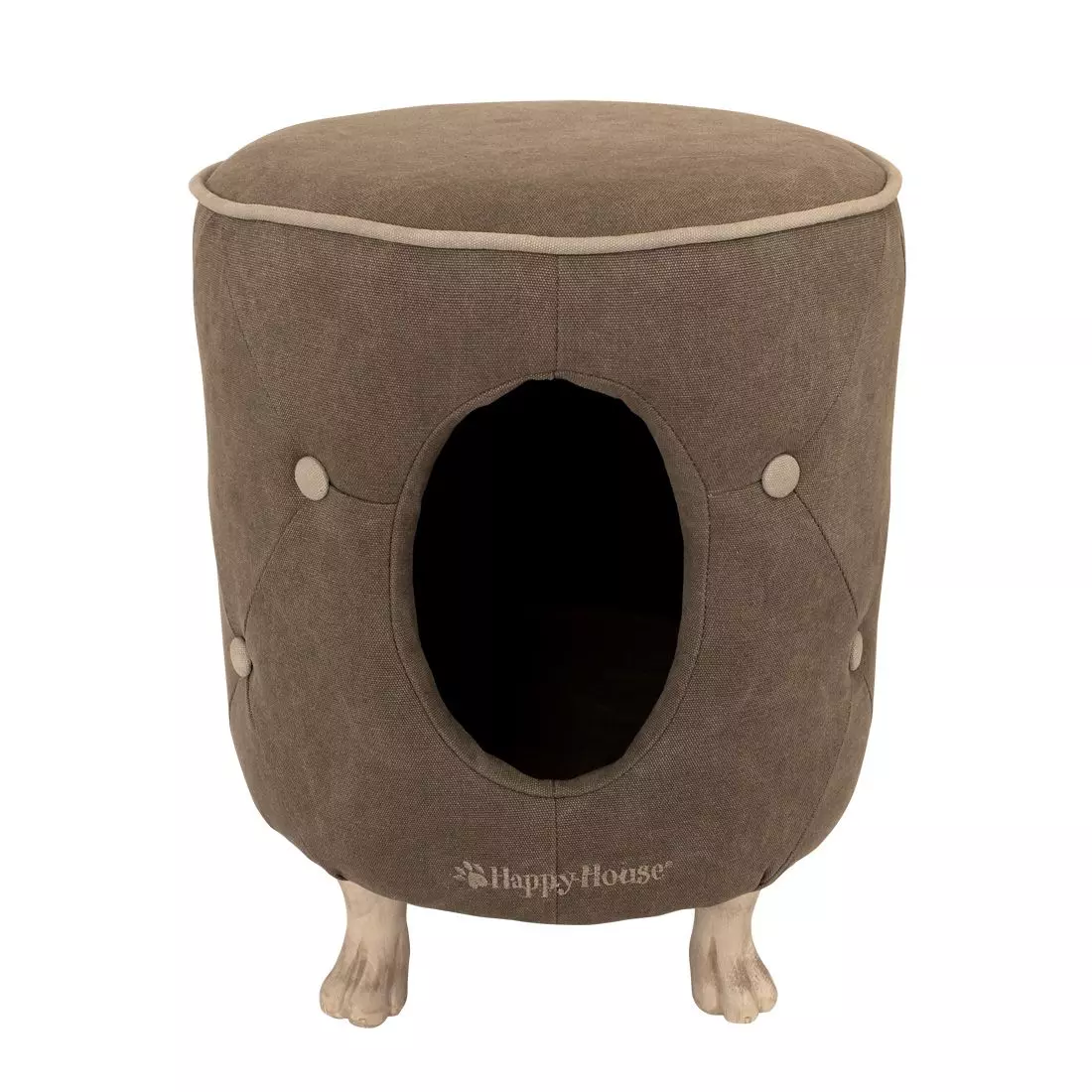 Et herlig trygt sted for hunden eller katten din, og er også et flott tillegg til interiøret ditt. Laget av et vasket lerret i fargen taupe med beige aksenter. Fine detaljer er hunde poter i tre.